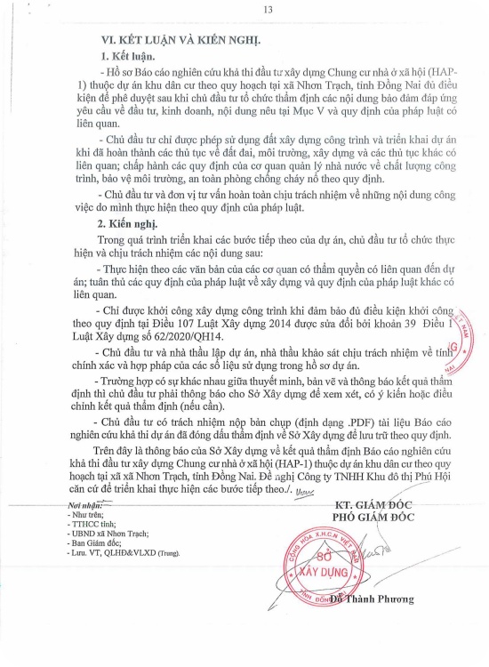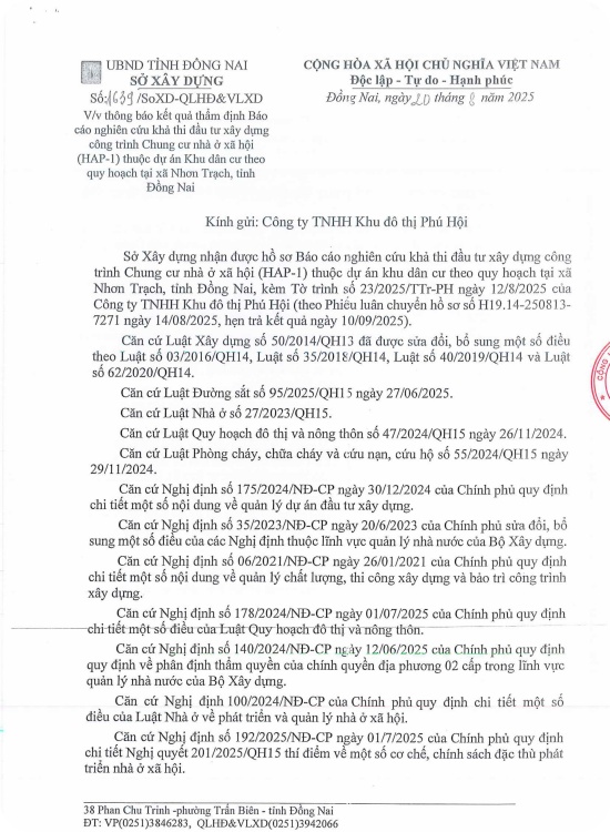Ngày 20/08/2025, Sở Xây Dựng thông báo kết quả thẩm định báo cáo nghiên cứu xây dựng công trình Chung cư xã hội (HAP-1) - Khu đô thị Phú Hội.